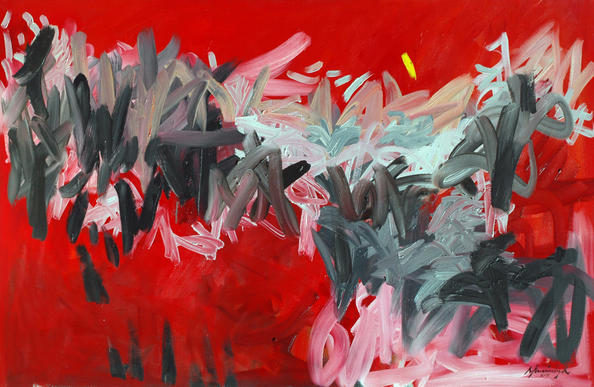 …in his works the central axis is the place occupied by man in time and his circumstance. The themes tackled in the series of his paintings is rather ludic, searching in the anecdotes from childhood… The series “Landscapes” is based on the idea of the landscape and the construction of the space through the use of the line. His work is eminently auto-referential, trying to inquire in experiences of his growing age, as a way to understand who he is nowadays.