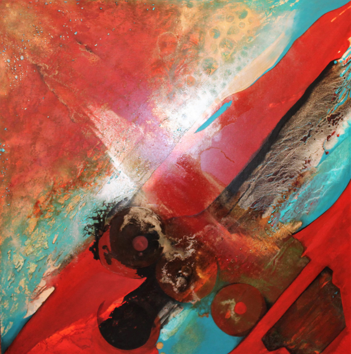 “…inspirada por la música, Vanessa Mac-Auliffe compone pinturas abstractas al óleo que actúan como un retrato del sonido. Implosionando, explotando y goteando como plástico artísticamente fundido, su trabajo utiliza una rica paleta de colores, desde tonos acuáticos hasta sanguíneos estallidos de sol.”